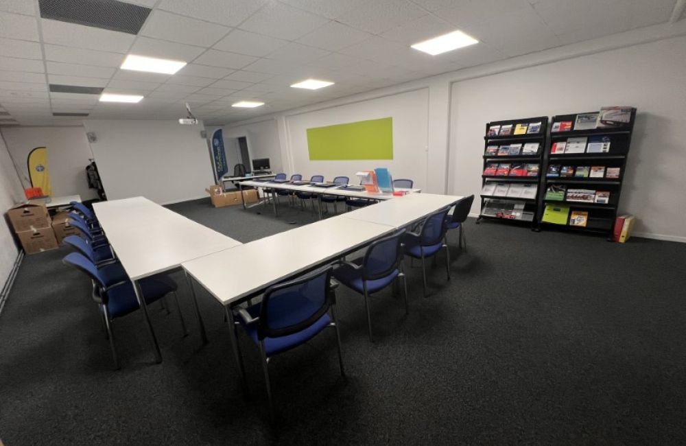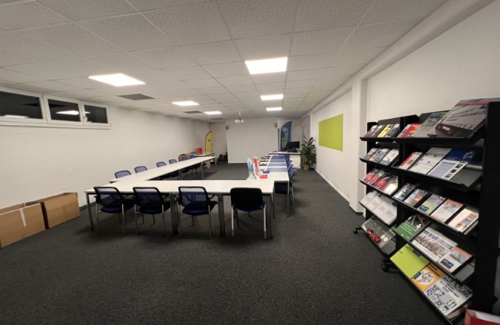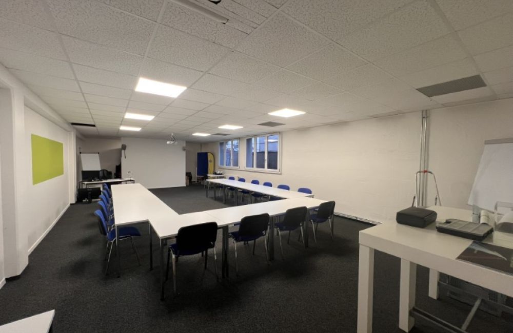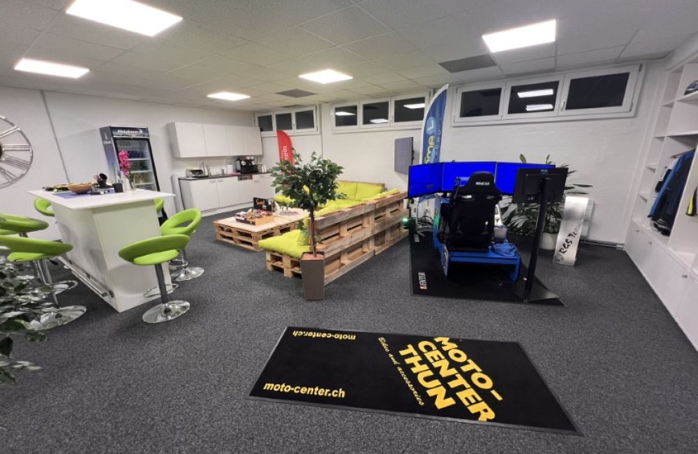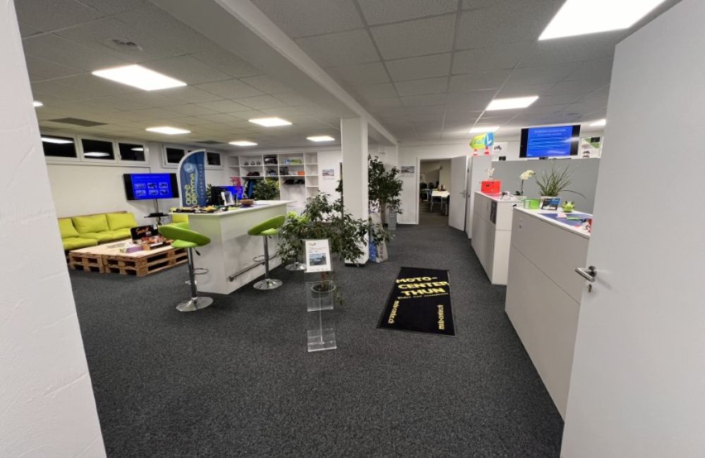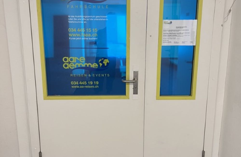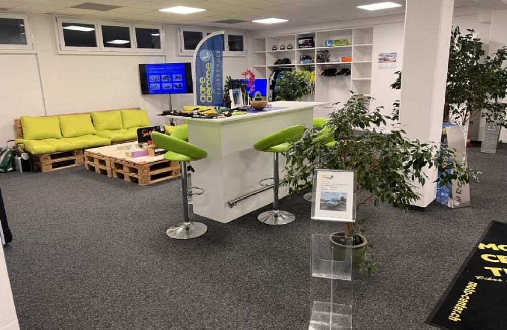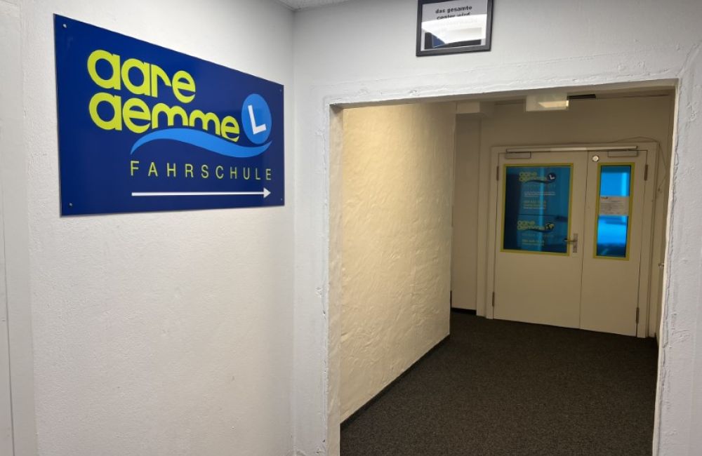 Der Hauptsitz der Fahrschule Aare-Aemme befindet neu seit dem 07. August 2024 am neuen Standort "Cuenin Areal", an der Solothurnstrasse 24c in Kirchberg. Wir verfügen über klimatisierte Büro- und Theorieräume, beide mit modernster präsentations Technik und natürlich mit Free-WLAN Zugriff ausgestattet. Individuelle Beratungen und Pausen finden bei uns an den Stehtischen oder unser grünen Sofasitzecke statt. In dieser Zone wird auch die neuste Motorradtechnik von unseren Partnern präsentiert.