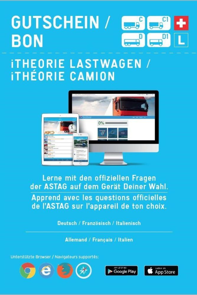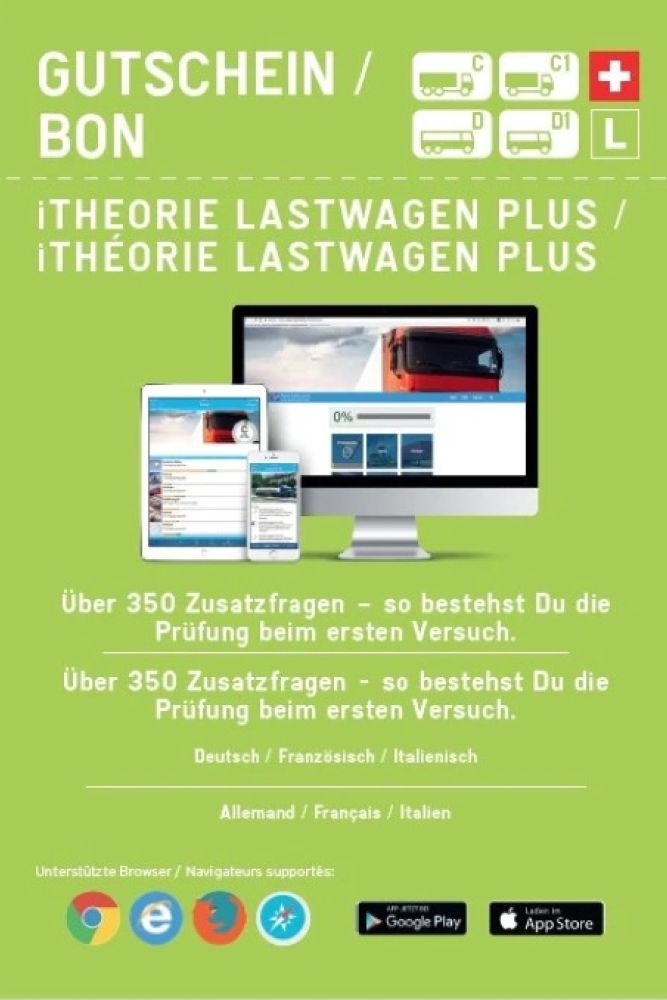 App iTheorie für Kategorie Lastwagen C oder Car D. Ein wichtiger Entscheid, mit der richtigen Software starten zu können. Mit dem dazu gehörenden Lernmittel, ist es dann einfach diesescheinbar schwierige Hürde nehmen zu können. Lassen Sie sich beraten und kommen Sie bei uns vorbei. Wir zeigen Ihnen, wie Sie diese theoretischen Teil bestehen können, egal welche Kategorie sie in Angriff nehmen wollen. Wir sind für Sie da.