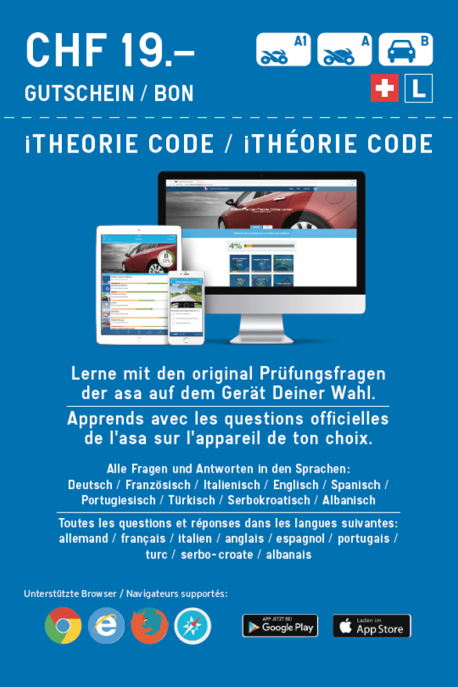 Der Notihilfe Kurs bildet der Start zur Führerprüfung aller Kategorien. Beim Nothilfe Kurs wird den Teilnehmern bereits die Möglichkeit gegeben, unmittelbar während dem Kurs. diese GUTSCHEINE App für iPhone oder Android Geräte, die iTheorie beziehen, resp. kaufen zu können und mit der theoretischen Ausbildung sofort beginnen zu können.